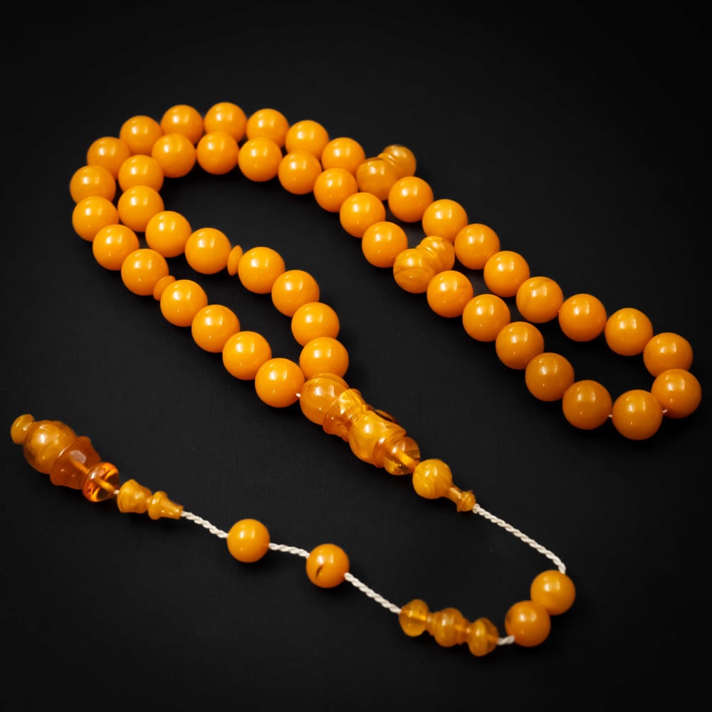 سبحة من حجر الفاتوران الأصفر المميز ومخروط بحرفية عالية وإتقان تم صناعتها يدوياً على أمر الخبراء في صناعة السبح , من أفضل انواع السبح النادرة والحصرية .